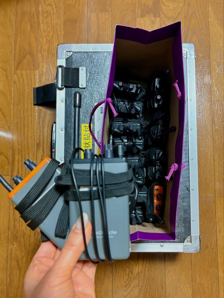 通訳者にとって無線機はライフライン。エンジニアの方がいない場合、このパナガイドを通訳者自身がいかに的確に操作するかがすべてだったりします。機器の設定に不備があると、通訳をしながら立ち上がり、お客様に近づいてスイッチを操作しに行くこともあります。