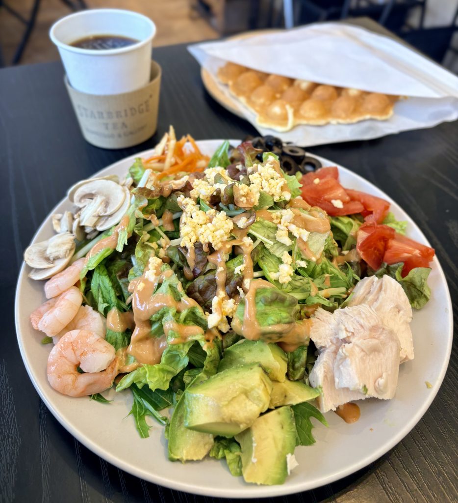 💓STARBRIDGE TEAにて「9種野菜の山盛コブサラダ」で帰国後の栄養チャージ😋お店の方も「海外に行く前にも後にもコブサラダ食べてます。栄養が取れる!」とのこと。枯渇した身体に美味しさがしみる〜✨