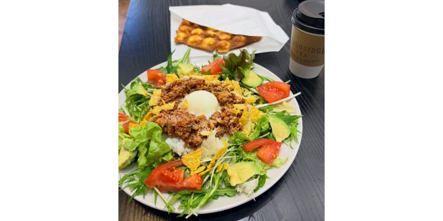私も出国前には「ぷるぷる温玉タコライス」を。そして毎回、脇役を固めるのは「エッグワッフル」。ポコポコした凹凸を手でちぎって口に入れると優しい甘さにほっこり☺️💗