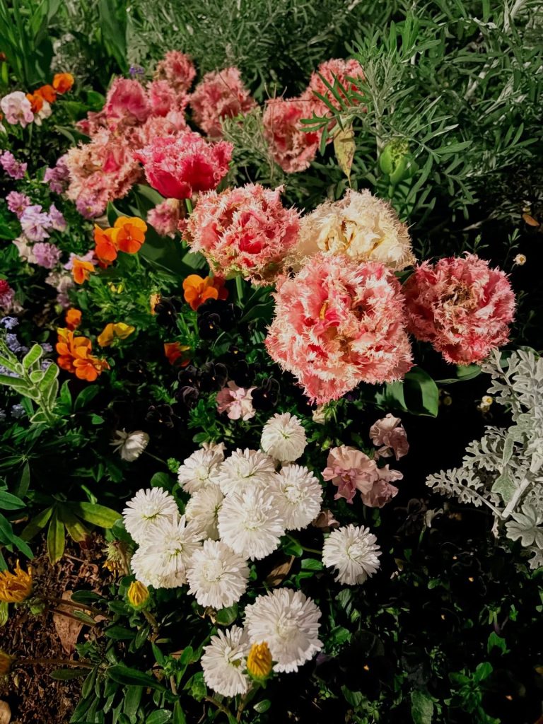 フライトでバキバキになった腰をほぐそうと夜の公園を歩いてみたらお花畑に癒されました〜😊💓植えて下さった方々に感謝🌙✨️